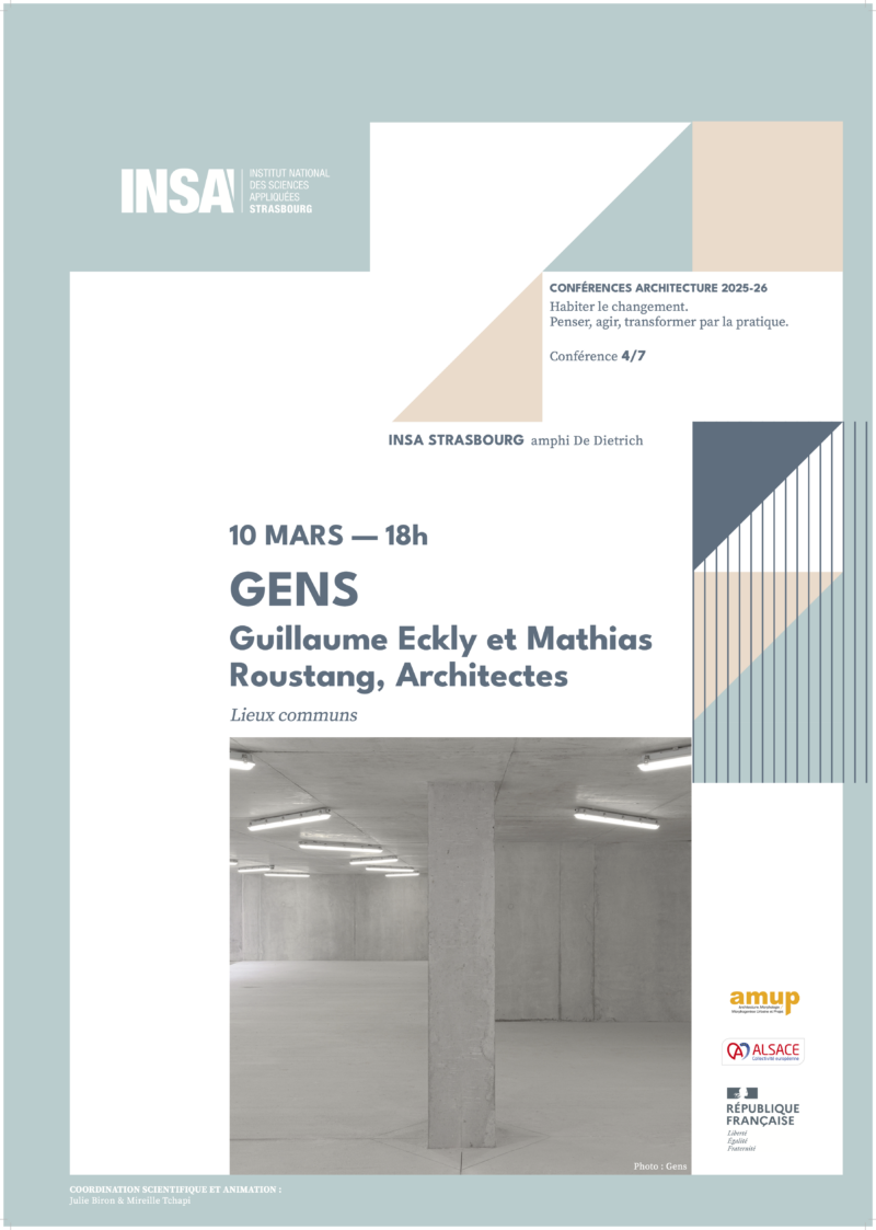 Guillaume Eckly et Mathias Roustang, de l’agence nancéenne GENS, tiendront une conférence à l’INSA Strasbourg (amphi De Dietrich) le 10/03 à 18h.