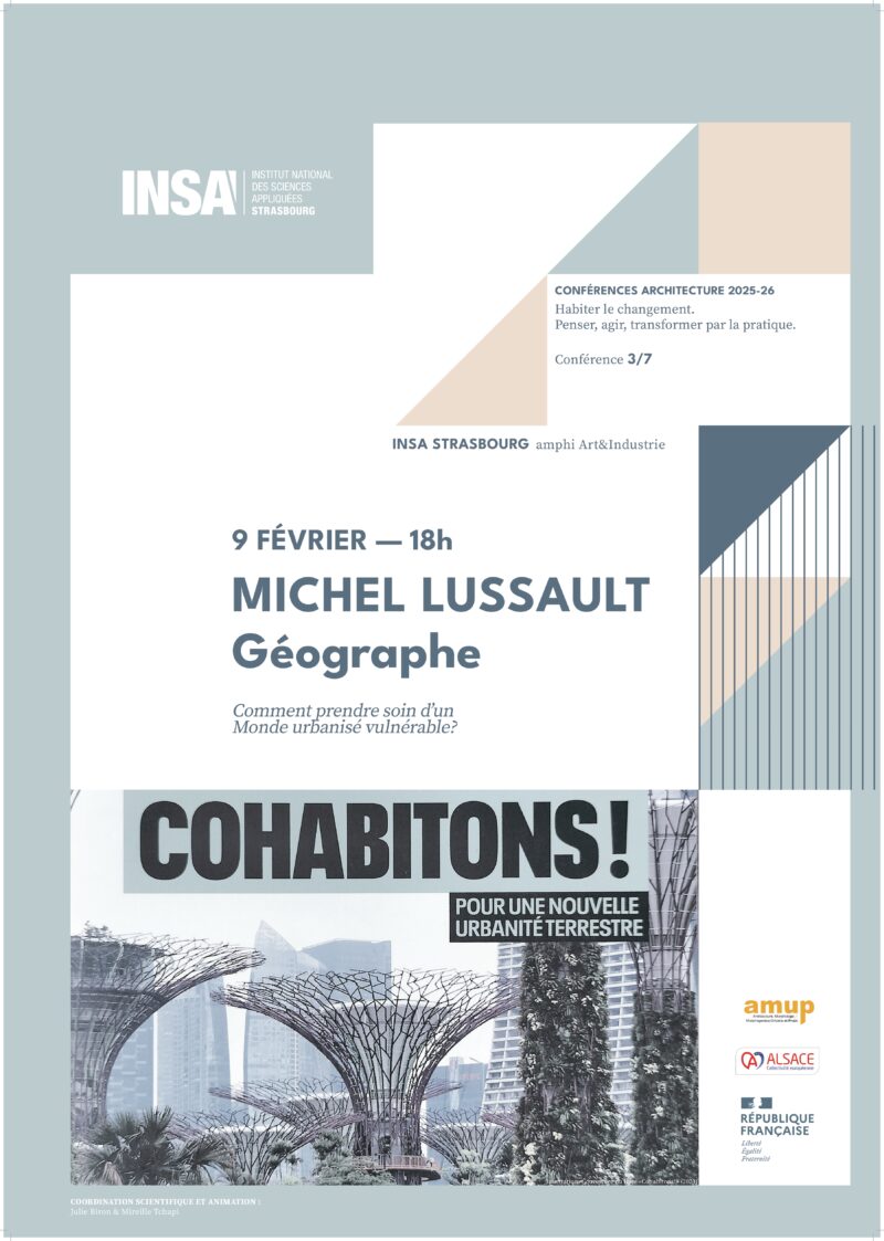 Michel Lussault (géographe) tiendra une conférence à l'INSA Strasbourg (amphi Art&Industrie) le 09/02 à 18h.