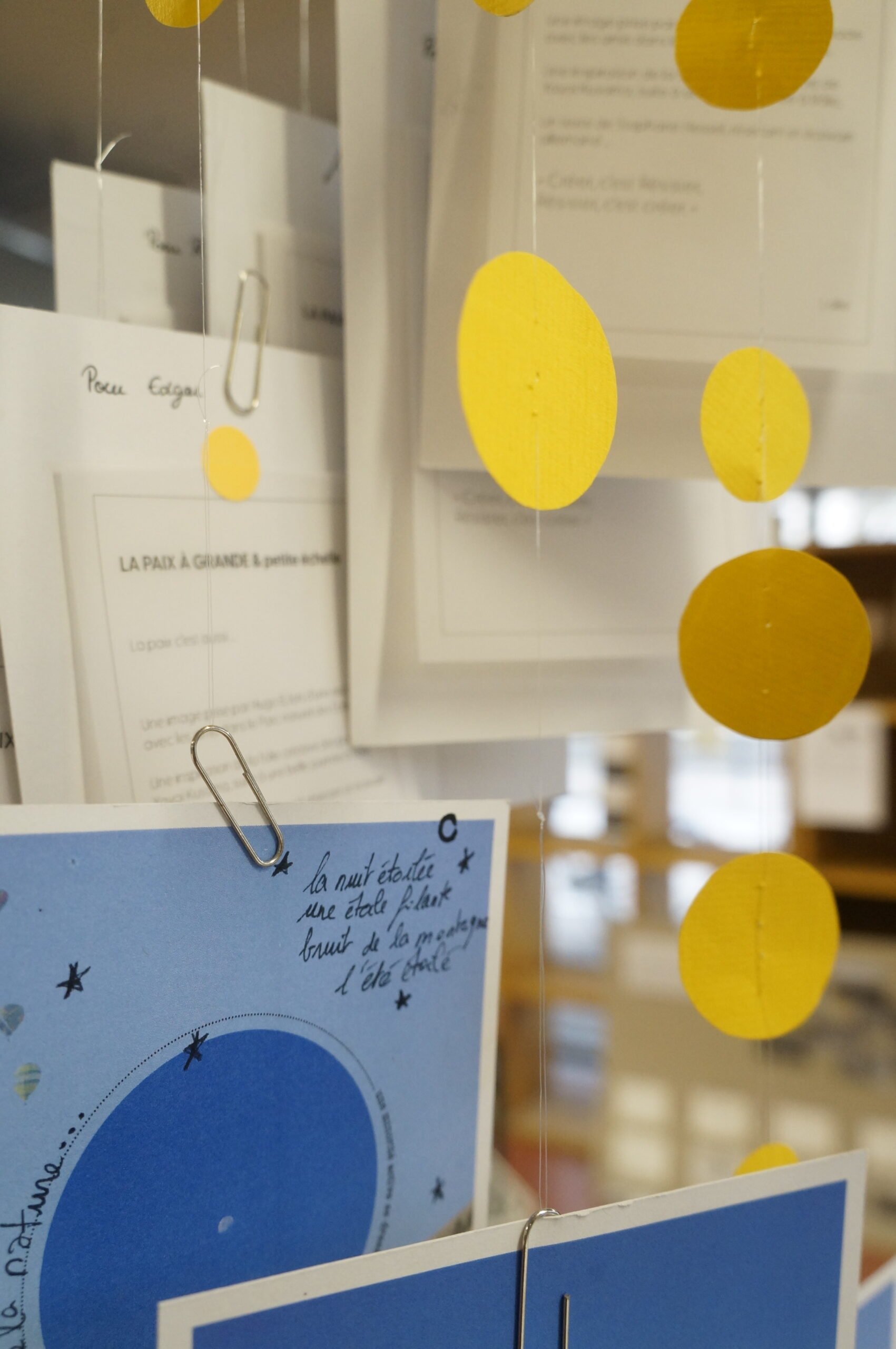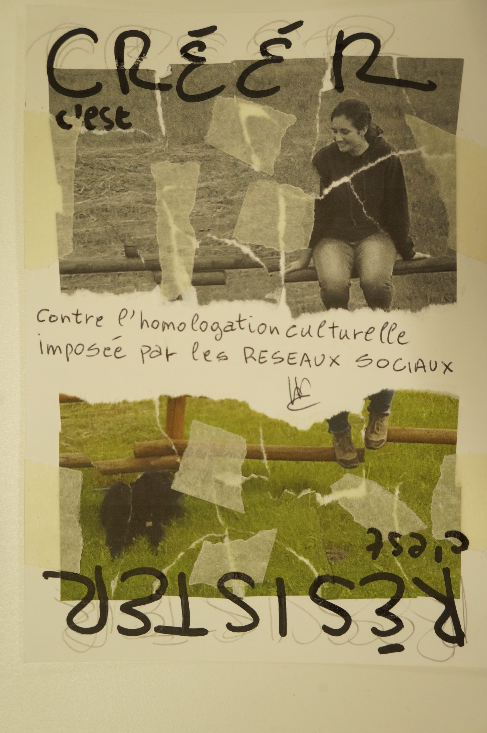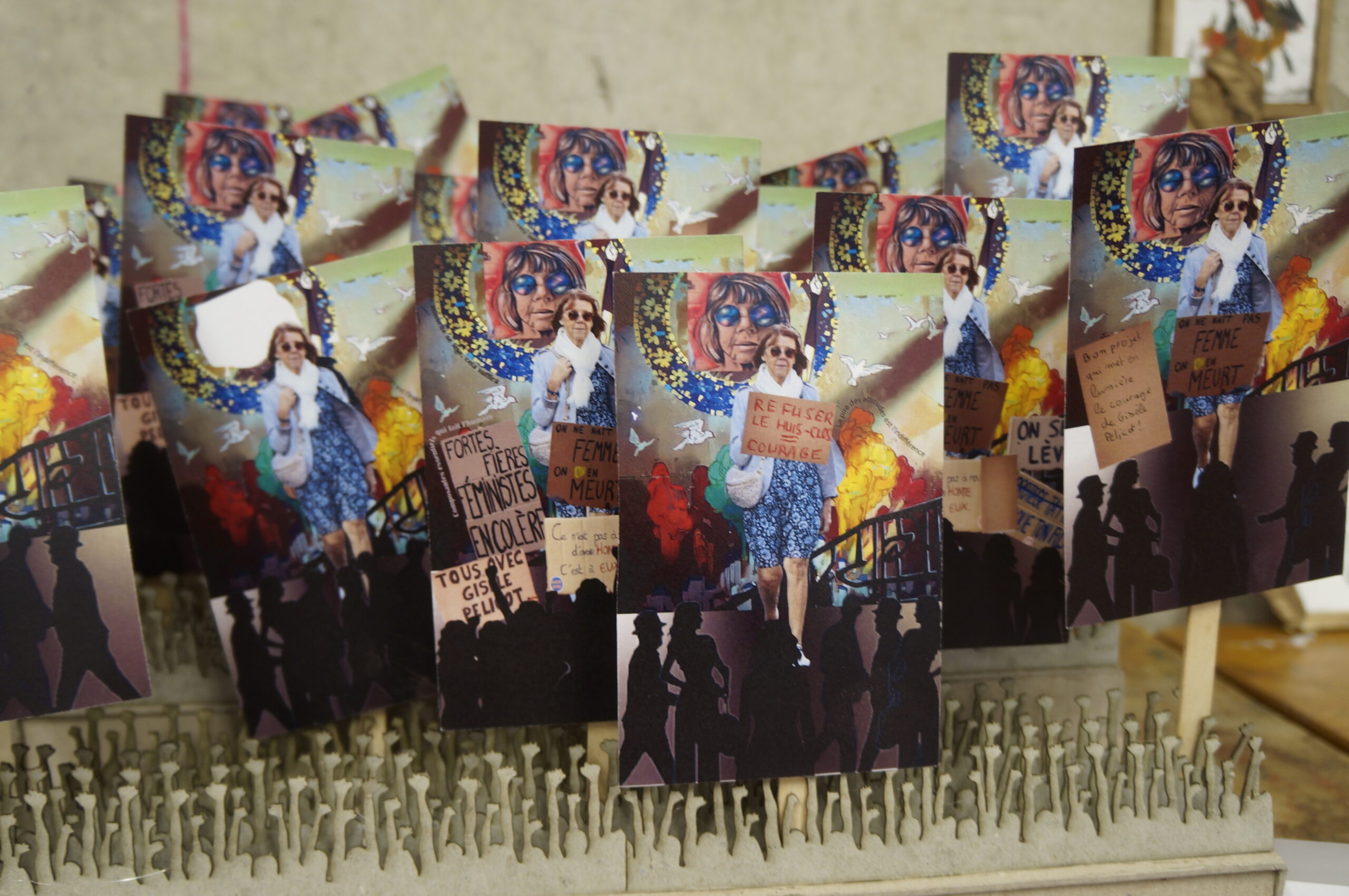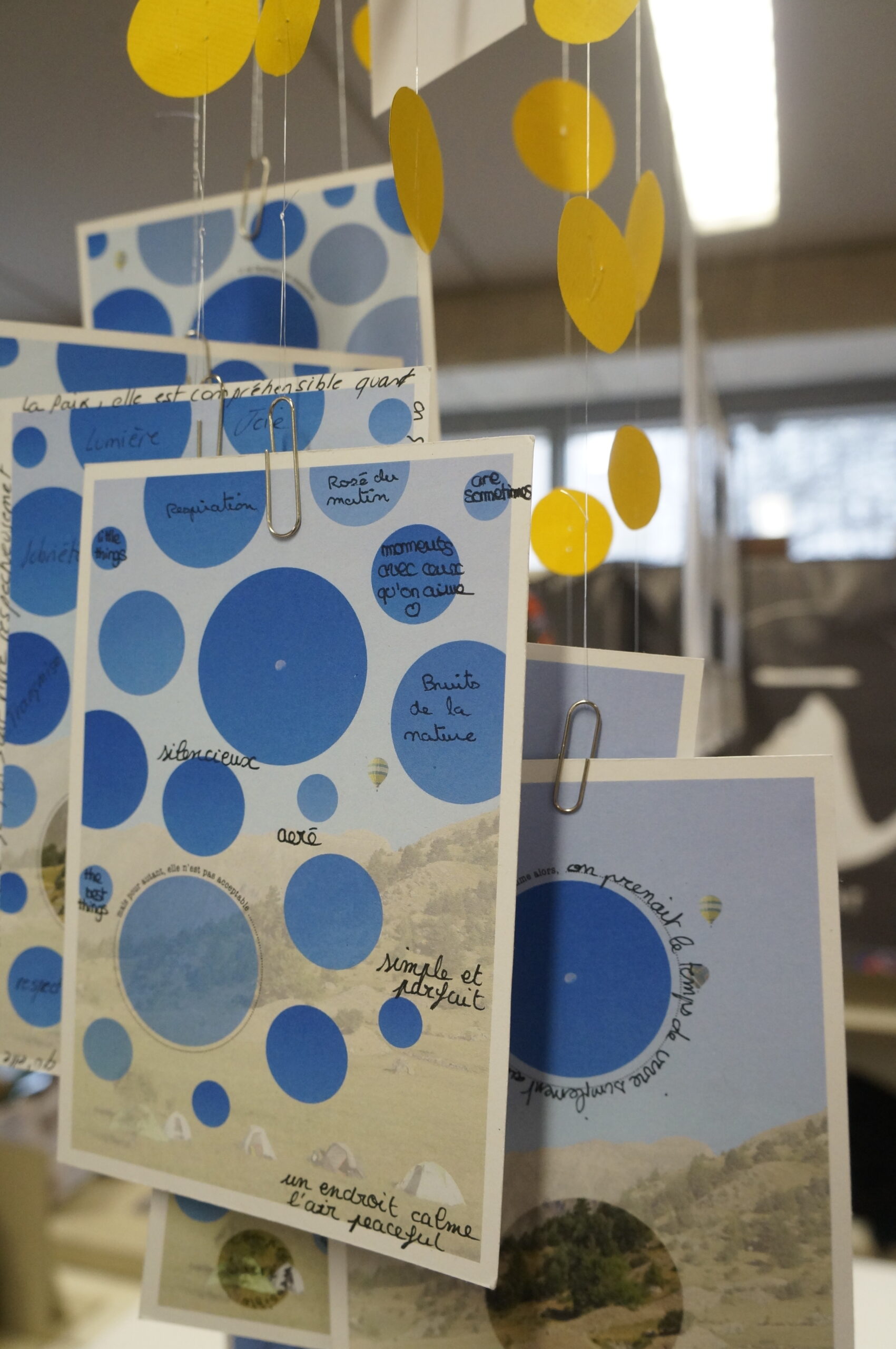 En parallèle, une série de dix cartes postales a été réalisée à partir d’une photographie inspirant la paix. Le texte de Stéphane Hessel « Créer c’est résister, résister c’est créer » y est intégré afin de dialoguer avec l’image. Chaque carte comporte un « blanc » que la personne recevant celle-ci devait compléter pour multiplier ainsi les messages de paix.