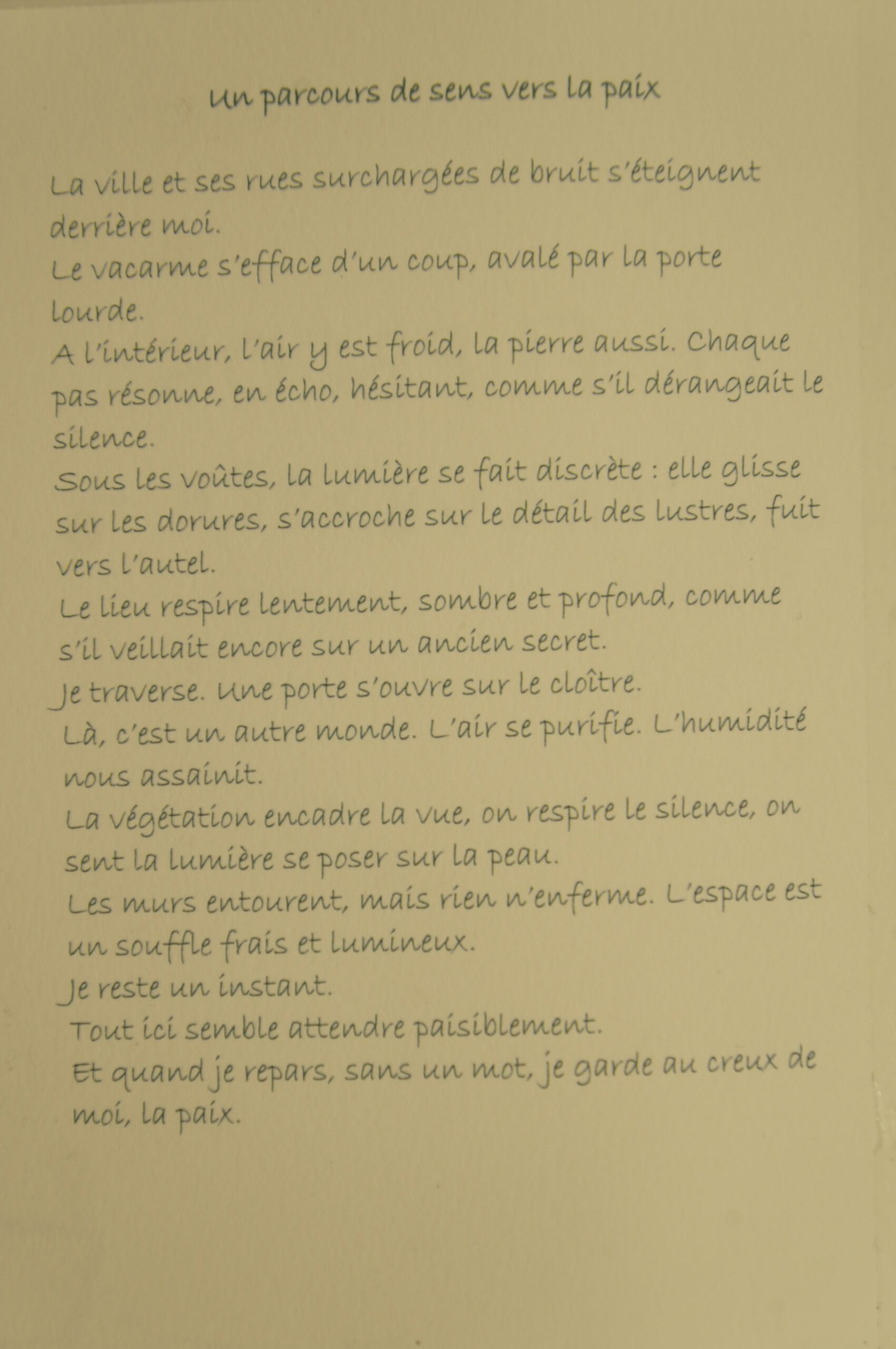 La prochaine étape consistait à visiter l’église Saint Pierre-le-Jeune protestant avec son cloître et de rédiger un poème en prose sur l’ambiance ressentie dans ce lieu.